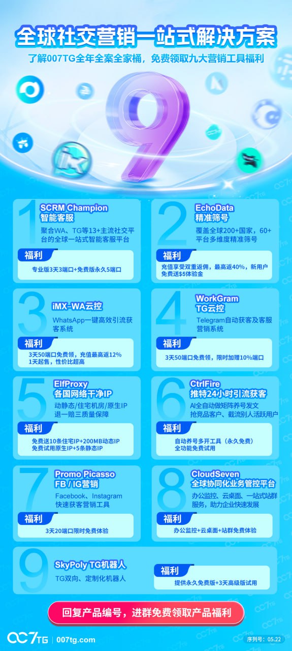 老板您好,请说出您的业务需求,领取007TG全套营销工具大礼包: